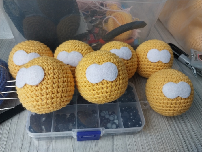 Итого 20 штук. Были еще мальчик с девочкой, но их нужно было очень срочно отправить и на фото они не вошли. Часть смайлов на заказы, часть сделала для наличия.