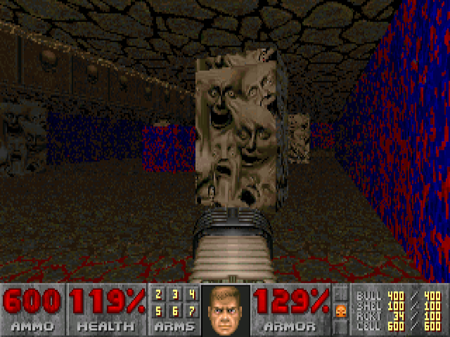 В конце этой карты под потолком болтаются четыре повешенных Билли Блейза. Это был главный герой серии "Commander Keen", с которой начиналась история id Software. Фанаты спрашивали, будет ли продолжение, и Сэнди Питерсен так закрыл этот вопрос.