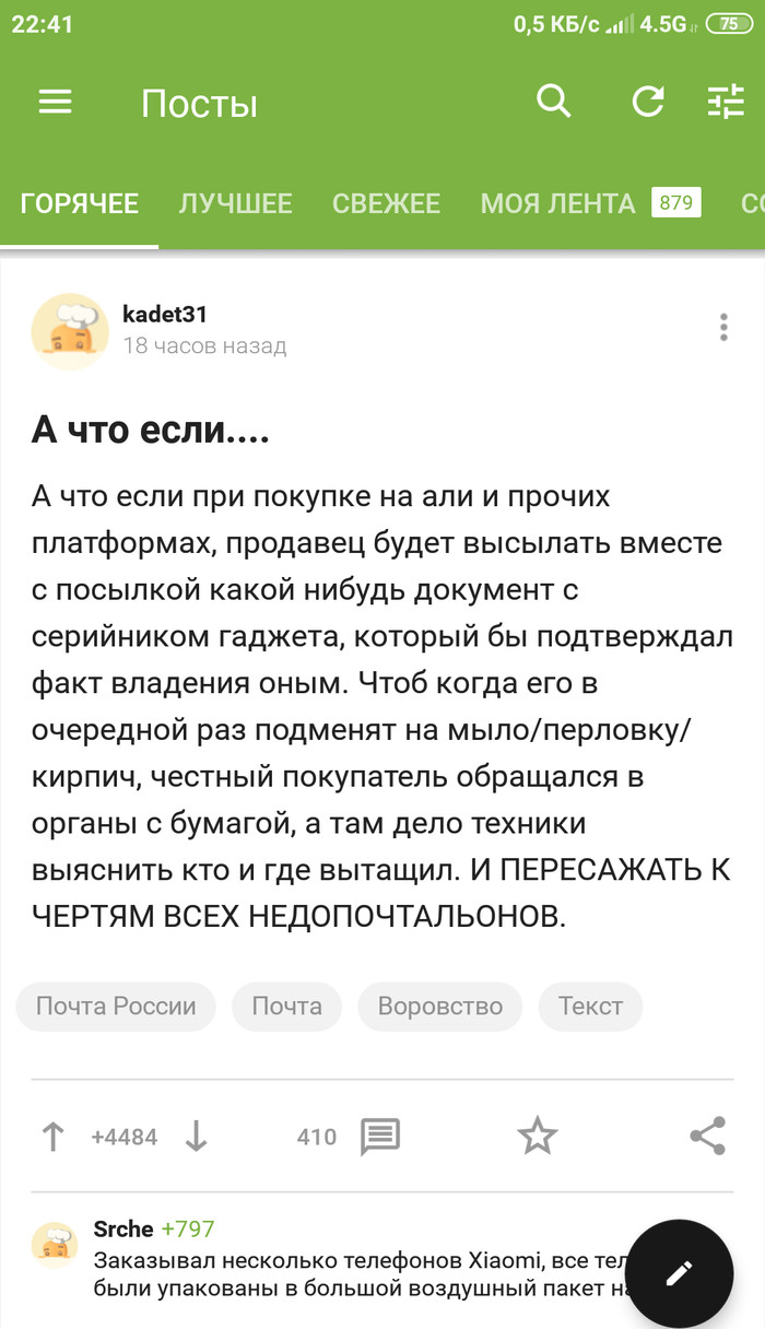 19 часов назад оставил комментарий, с основной мыслью, что у любого телефона есть уникальный идентификатор, который позволяет его отследить и найти. Таким образом можно свести кражи на почте до уровня"статистического нуля". И мой комментарий набрал ноль плюсов (а я так хотел помочь людям и своей самооценке). А потом @kadet31, развернул и набрал столько плюсов, что мне и не снилось - я нашел человека, с которым у нас полная синхронизация мыслей!