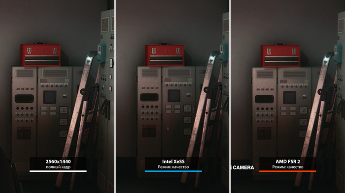 Но с вентиляционной решеткой на шкафчике лучше всего справляется именно технология Intel — тут не нужны никакие отдельные комментарии. Если вам кажется, что в варианте с FSR 2 она рябит на скриншоте, то вам не кажется.