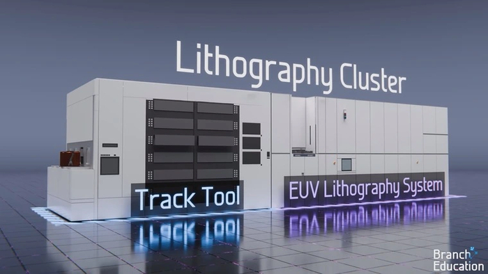 Настала очередь рассмотреть работу с кремниевыми пластинами. В контейнере FOUP они транспортируются на литографический кластер, состоящий из трекового инструмента и EUV-машины.