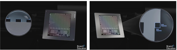 Подобная точность — важная составляющая производственного процесса. Размеры самых маленьких элементов транзисторов составляют менее 10 нм, поэтому даже погрешность в пару нанометров может привести к нарушению их электрических соединений со следующим слоем.