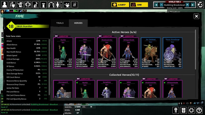 Потенциальный достойный соратник для Idle Champions of the Forgotten Realms, Cookie Clicker, Melvor и прочих Idle-развлечений. Здесь игроков ждут подземелья, боссы, миллиарды ундецеллионов золота, почти бесконечная прокачка, десятки петов и героев.