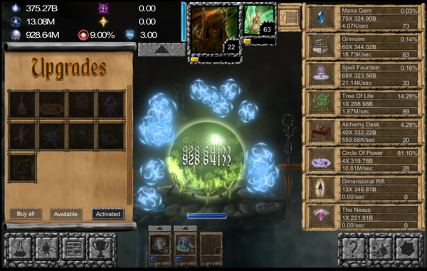 Закончим мою подборку, чем-нибудь классическим и более похожим на кликер. Вы играет за адепта, молодого амбициозного. И вот он склонился над шаром магическим и притягивает ману, ей же он создает всякие магические штуки. Спустя время около вас (если конечно вы выполните ряд условий) будут крутится разные зверушки, которые смогут облегчить вашу участь. И вот вы становитесь сильнее кастуете разные заклинания и пред вами открываются все новые и новые горизонты, ведь вы можете стать кем угодно: друидом, демонологом, некромантом, пиромантом, а если совсем разочаруетесь в магии, то можете уйти в экзорцисты. Путь тернист, но он того стоит…