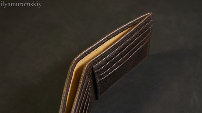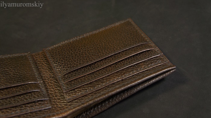 Результат ниже. Классический Bifold, компактный, лаконичный, но не простой. Надеюсь это изделие можно назвать действительно ручной работой.