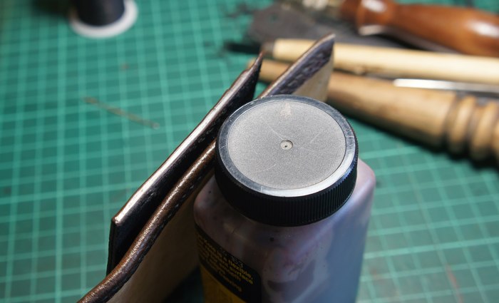 Прошил льняной нитью, ф 0,6 мм, дополнительно вощил. Из химии использовал клей fiebing's cement и лак для уреза fiebing's edge cote в несколько слоёв.