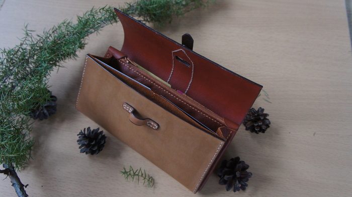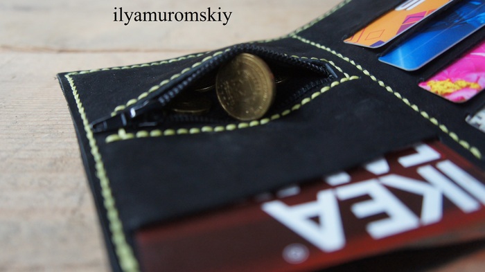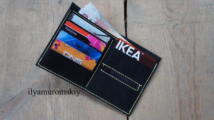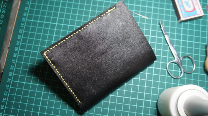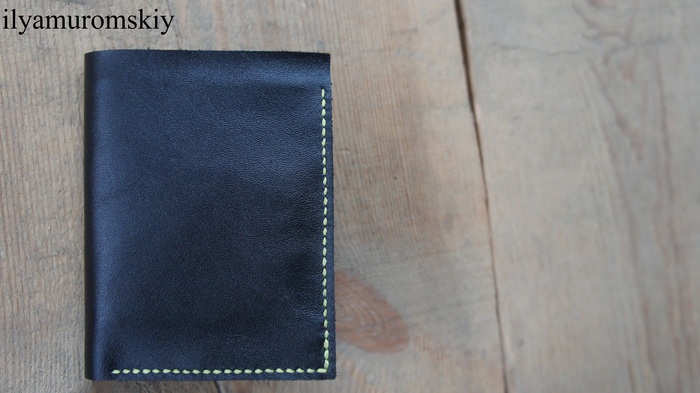 Написал мне человек по поводу изготовления гармоничного небольшого портмоне, без изысков и украшательств, чтоб был простой, удобный, но с контрастной отделкой. Представление будущего кошелька у него было вполне конкретное, воплощенное в чертеже. Обсудив детали, слегка подкорректировав некоторые огрехи, приступил к делу.
