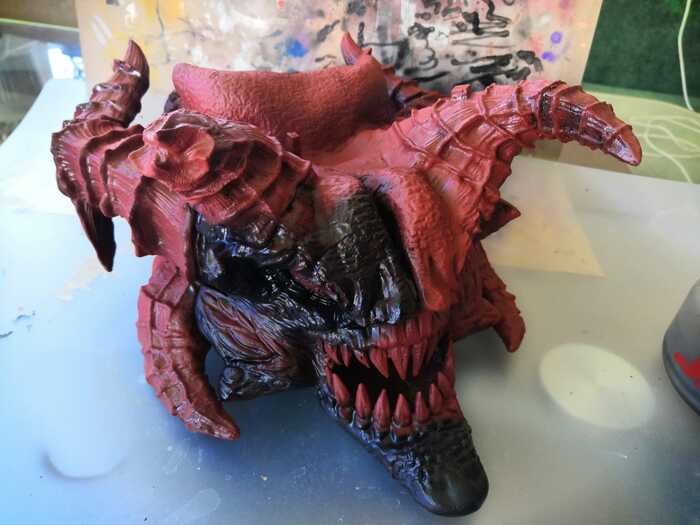 Заказчик захотел Спауна - версию дядь Саникса. Печатать решили традиционно: подставку и монстра прутковым пластиком SBS на anycubic kossel plus, самого Спауна фотополимером на anycubic photon mono. Обработка ксилолом и пилочкой. Швы корректировали тамиевской шпатлевкой. Грунтовали аэрозольным Kudo.