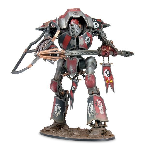 Класс «Доминус» — Рыцари тяжелой огневой поддержки. Имеют двойное плазменное ядро, что позволяет им управлять огромной системой вооружения, сохраняя ионный щит. Также, они могут усилить свой щит, чтобы защитить близлежащих союзников. Помимо пушек в руках, имеют 4 мельтагана, а также ракеты и дополнительные пушки на панцире. Самые распространенные модификации — «Кастелян» и «Валиант». (не знаю почему их еще и в отдельный класс вынесли, причем это все в рамках одной статьи, у меня они изображены выше по тексту)