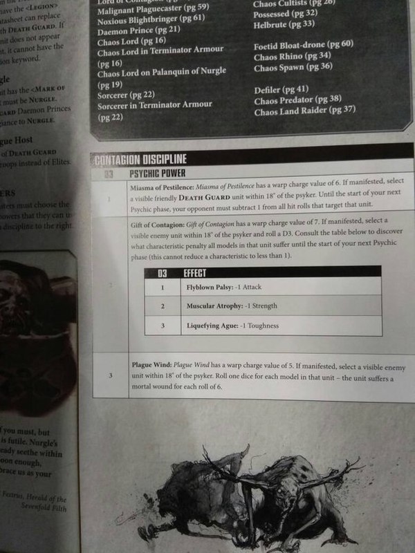 Он слегка растолстел, как в прочем и кмк остальные персонажи, имеет 4+ инвуль и ополовинивает весь входящий в него дмг(но неизвестно вверх или вниз, вероятнее всего вверх). Так же он раздаёт рерол ту хит для Чёрного легиона в 12" и в них же автопроход морали для любых хсм. Так же как и обли имеет дип страйк без скаттера, как видимо и все кто его вообще будет иметь.
