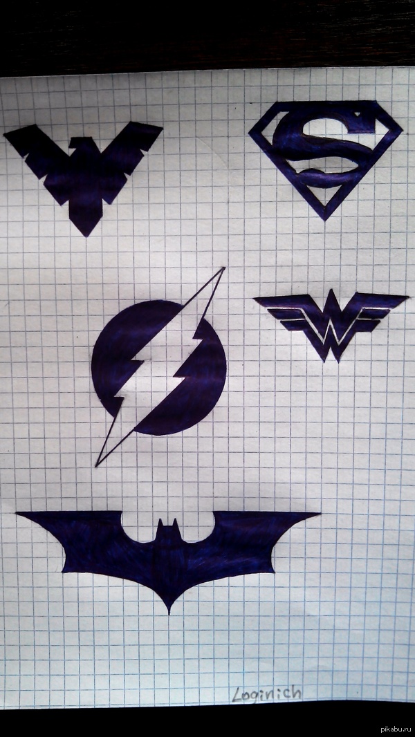 Loginich Супирхиииироус 10 лет назад Рисовал, подумал, почему бы не выложить? Критикуйте. Попробуйте угадать в каком порядке я рисовал, кому принадлежат эти логотипы и какой из них мой любимый)Спс Супергерои Рисунок Логотип Injustice DC Comics