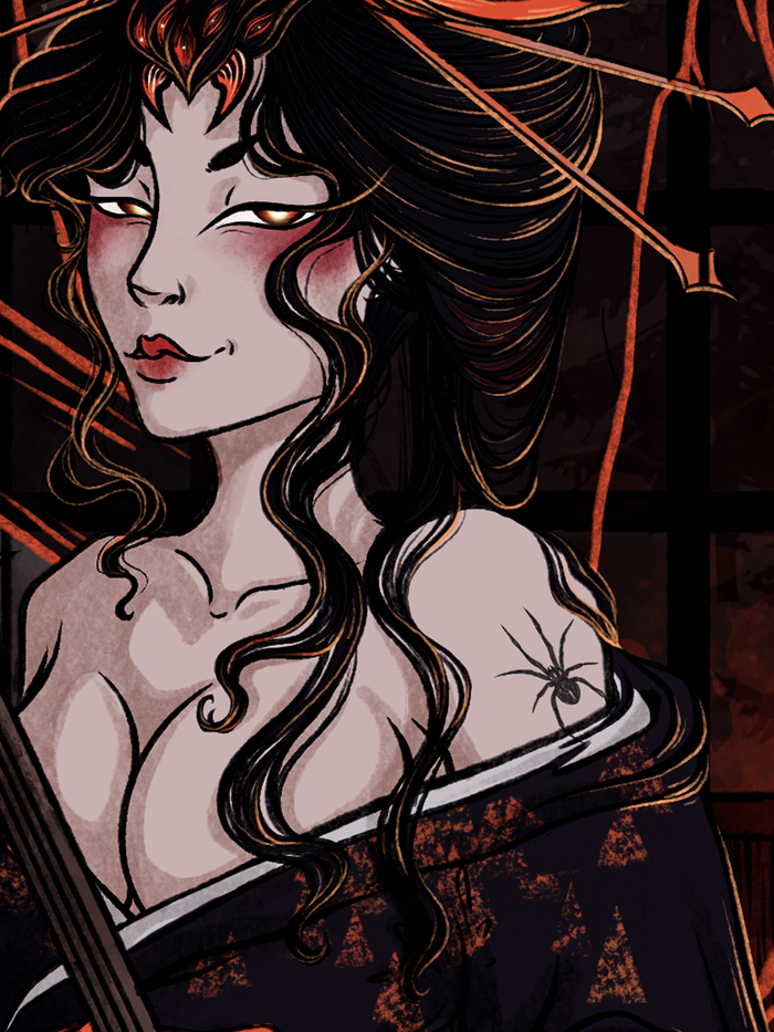 Дзёрогумо не обычный паук. О нет, это паук со злым извращением. Представьте себе: потрясающая соблазнительная женщина с длинными распущенными волосами заманивает ничего не подозревающих людей в свою паутину. Но вот в чем загвоздка: попав в ловушку, она превращается в чудовищного паука с телом паука и головой красивой женщины!