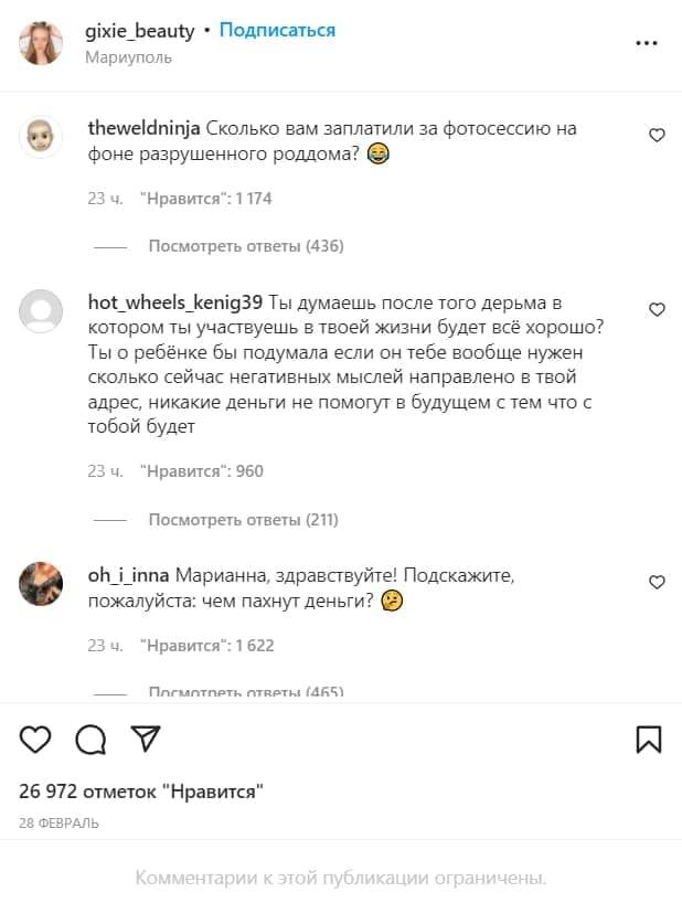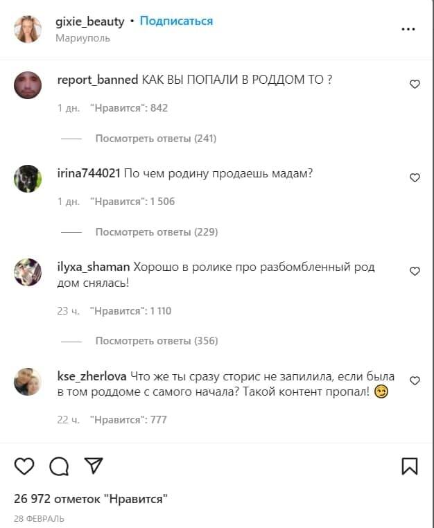 Особо упоротые патриоты нашли страницу девушки в Instagram и обвиняют ее в том, что она якобы специально пришла к роддому и "поработала моделью".