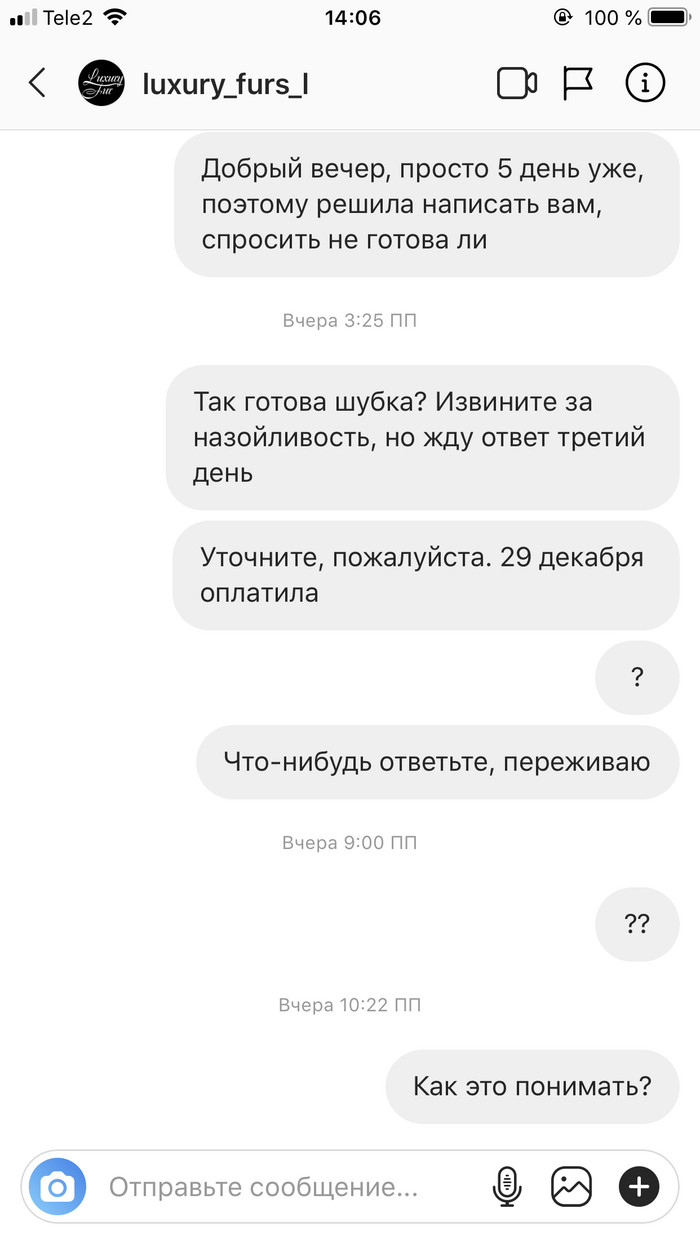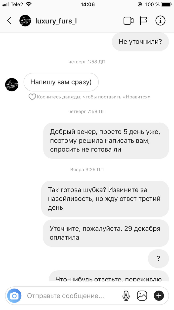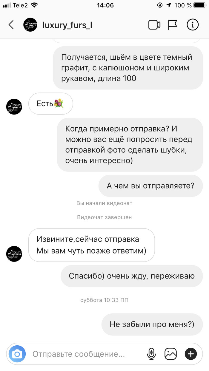 Якобы пошив шубы 5 дней, «красиво в уши лила девочка-менеджер дальнейшее развитие событий, пошив, доставка и тд».