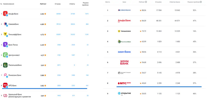 Мы зашли на Sravni RU: МТС Банк на 8 месте: между Ренессансом и УБРР