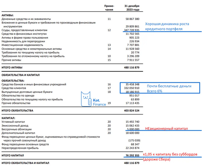 Структура актива/пассива – классическая: кредиты одних людей фондируются вкладами, накопительными и карточными счетами других. Немного удивляет низкая ставка привлечения – всего 6%.