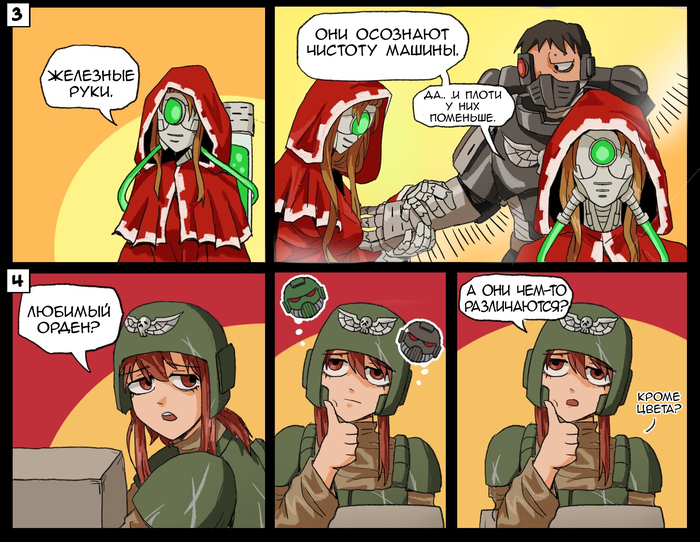 Этот орден утверждает, что плоть слаба и поэтому космодесантники заменяют органику механическими частями. Но так ли это? Есть примеры из книг или других источников, где действительно показано, что воин с механикой из железных рук сражается эффективнее, чем космодесантник другого ордена?