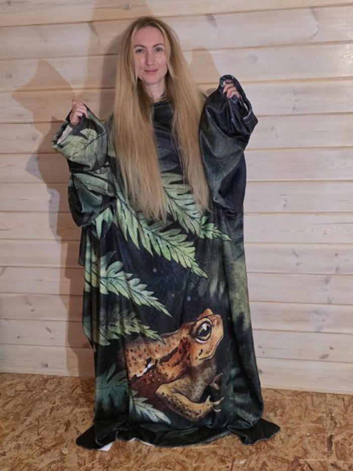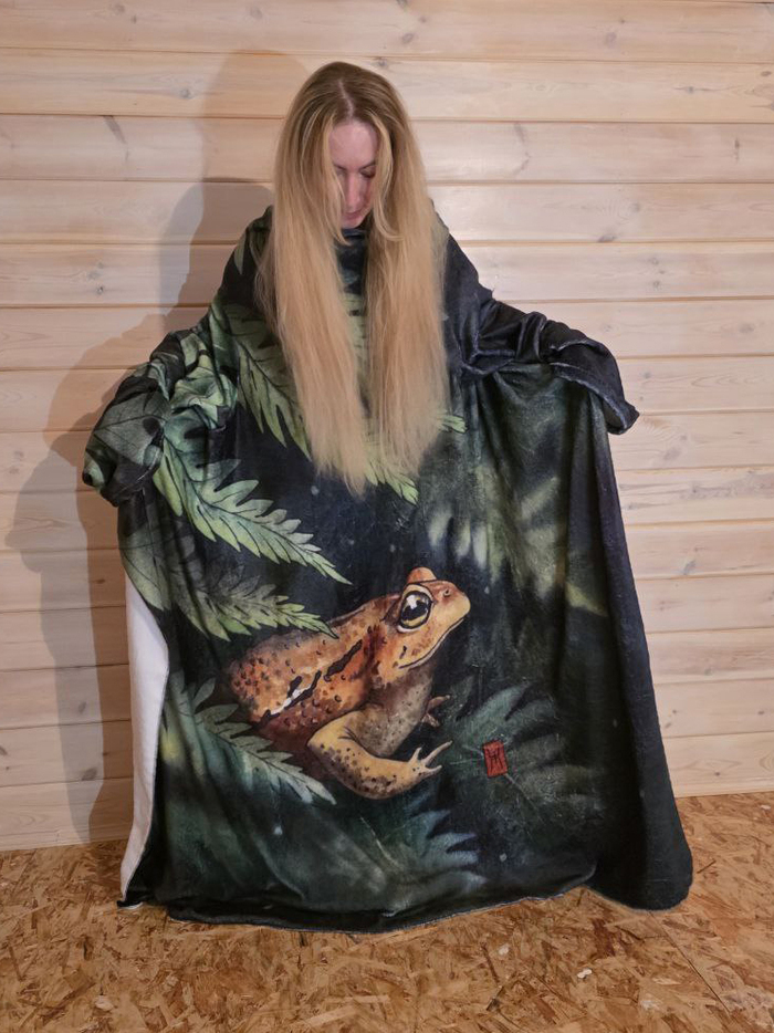 Рисую акварелью всякое. Лягушачий плед с рукавами и моей иллюстрацией)