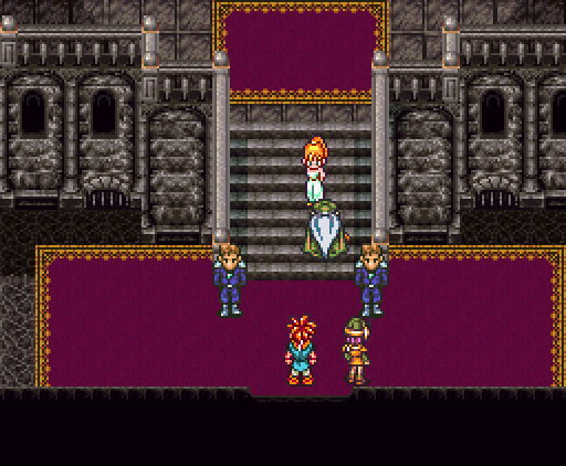 В компании принцессы Хроно теперь почти беспрепятственно может ходить по королевскому замку. Он даже встречается со своим адвокатом, Пьером.