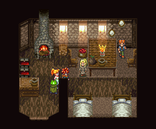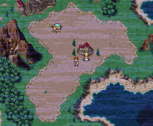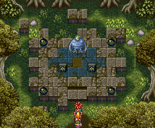 Несмотря на всю скромность, Лягуш, похоже, очень доволен. Он прямо-таки светится своей жутковатой лягушачьей улыбкой, когда вместе с Хроно и Марл они покидают королевский замок.