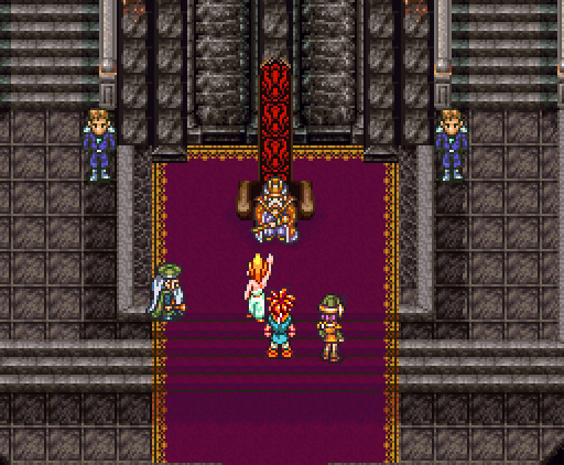 В зале наступает гробовая тишина. Хроно и Лукка качают головами: похоже, что встреча принцессы с отцом пошла слегка не по плану.