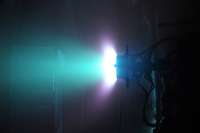 - А я сюда прикреплю фотографию работающего СПД-200 в испытательной вакуумной камере.
