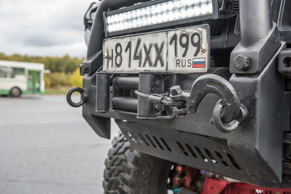 Этот Jeep Grand Cherokee ZJ привлекает внимание не только «техников», но и «эстетов». В отличие от страшных «котлет», он и едет, и выглядит прекрасно. Вместо установки тяжеленного обвеса Роман усилил кузов и в прямом смысле слова вылепил светотехнику. Корпуса задних диодных фонарей сделаны из стеклопластика по вылепленной матрице. Также укреплены колесные арки: расширители выполнены из яхтенной стеклоткани, приклеены и зашпатлеваны, причем в корпусах передних расширителей находится пена – так лучше гасятся удары о деревья. Детали «морды», кроме радиаторной решетки с вертикальными прорезями, изготовлены вручную по картонным матрицам. Минималистичный стальной задний бампер без места под лебедку не портит геометрию, передняя лебедка максимально «утоплена» в кузов.