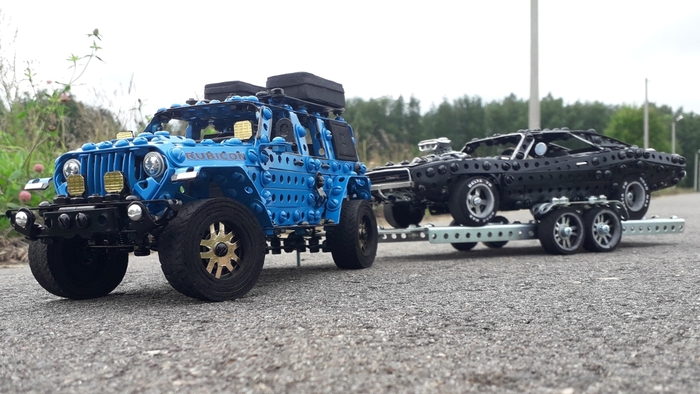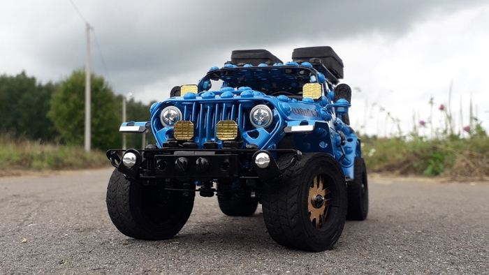 Американцы не только добавили к Вранглеру третью ось но и установили мощный двигатель V8. Это тот самый мотор которым оснащен Grand Cherokee Trackhawk V8 6.2 - 717 л.с (875 Нм).