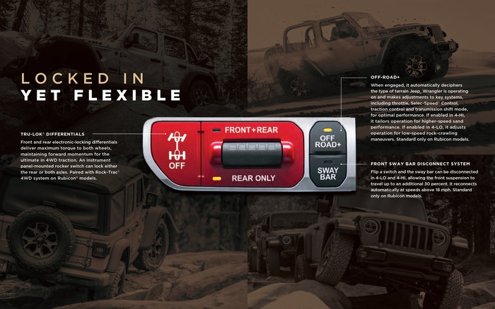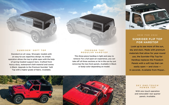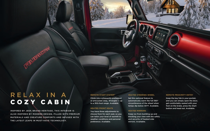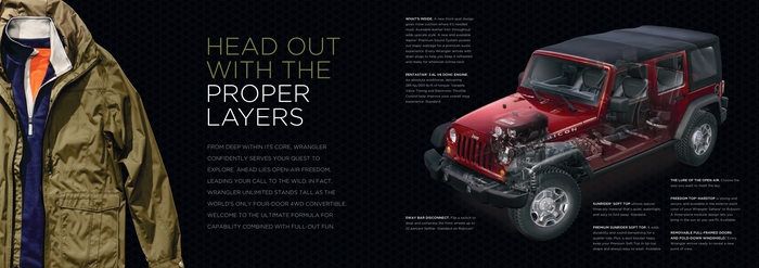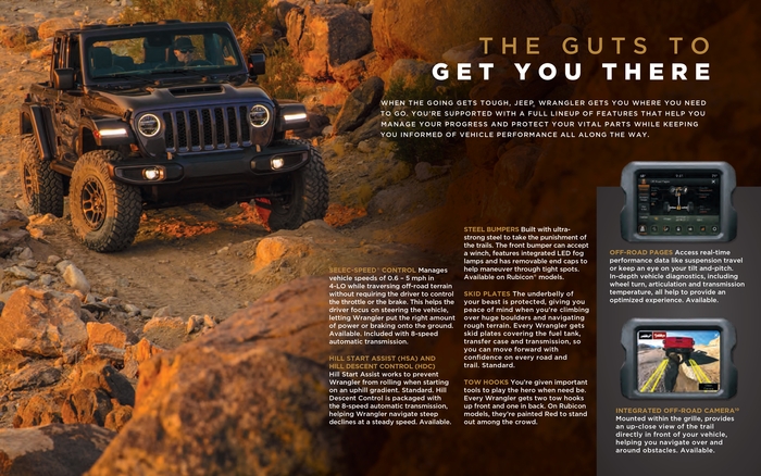 Jeep Wrangler создан для большего. Свобода и приключения - вот что может подарить авантюрным водителям Jeep Wrangler. Он сочетает в себе легендарные черты, современный дизайн и материалы – все это позволит получить максимальное удовольствие не только от путешествий, но и от езды по трассе. Jeep Wrangler уверенно преодолевает тяжелое бездорожье. Он полностью аутентичен и идеально подходит для тех, кто хочет почувствовать свою индивидуальность и сделать его по-настоящему своим.