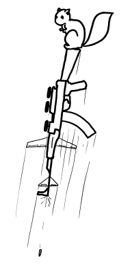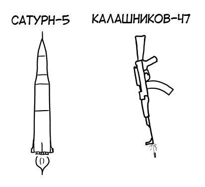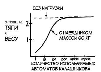 Как выяснилось, у АК-47 тяговооруженность около двух. Это означает, что если вы поставите его вертикально дулом вниз и каким-то образом зафиксируете спусковой крючок (Внимание: пожалуйста, ПОЖАЛУЙСТА, не пытайтесь повторить это), то он, стреляя, поднимется в воздух.