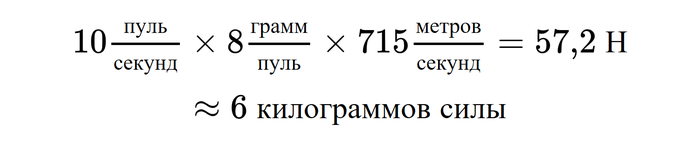 На практике фактическое значение тяги оказывается выше примерно на 30%. Причина этого в том, что оружие не просто плюется пулями, оно также выбрасывает горячий газ и продукты взрыва. Величина дополнительной силы, которую добавляют эти эффекты, зависит от оружия и патрона.