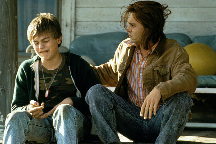Начали с женой обсуждать похожие фильмы, и я вспомнил, что лет двадцать назад смотрел мелодраму с Джонни Дэпом. Называется "Что гложет Гилберта Грейпа". Там молодой Ди Каприо как раз играл ребёнка с особенностями. Включили его следом. С первых минут фильм прямо-таки окунает в атмосферу аризонского захолустья: обшарпанные здания, редкие деревья и бесконечные поля вокруг. Герой Деппа, молодой парень, работает в продуктовом магазине. У его есть брат Арни с задержкой развития, две сестры и мать, которая семь лет не выходила из дома.