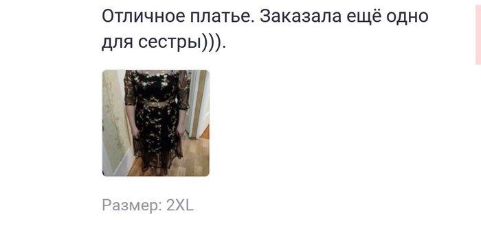 Жена сидела в приложении Joom, искала платье. И нашла вот такое объявление, сначала прикололись за описание, а потом за комментарии покупателей.