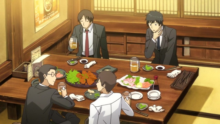 Моё любимое аниме. Не совсем про взрослых ведь тут школа в основном... Но ГГ - 28 летний мужчина, который решает воспользоваться разработкой компании и снова становится - старшеклассником. Знаете не все любят это аниме, а также даже после прочтения поста не каждый пойдёт его смотреть, но если вы ищите интересную историю о безработном что обретает друзей и любовь, а также помогает остальным принимать решения и делится своим опытом. Вообщем у кого есть время - советую потратить на Повторную жизнь. Не в прямом смысле конечно.
