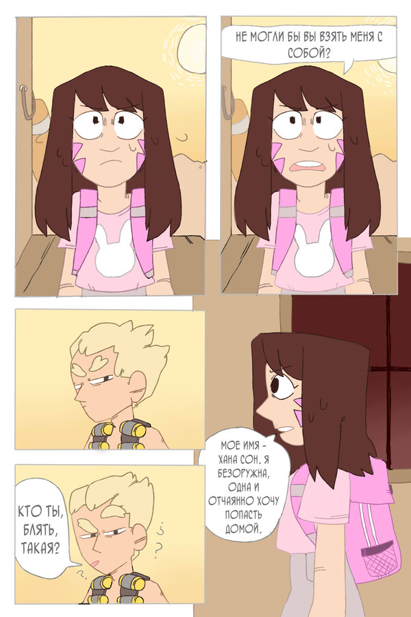p.s. Для не игравших в Overwatch. Девушка на первом фрейме - Хана Сонг по прозвищу D.Va, пилот робота, который при использовании ульты взрывается, нанося большой урон. При этом она кричит "Nerf this!". А мужик на последнем фрейме - Крысавчик, любящий все, что взрывается