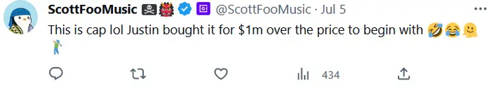 «Ну эт херня лол. Начнём с того, что Джастин изначально купил его [NFT] на $1 млн дороже рынка».