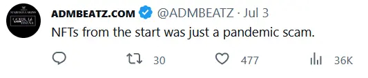 Один из комментаторов высказал мнение, что NFT не что иное, как «пандемическая афера», подразумевая отсутствие веры в их долгосрочную жизнеспособность. Другой же намекнул, что вся эта история может быть прикрытием для отмывания денег.