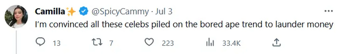 «Я убеждена, что все эти знаменитости залетели в bored ape тренд, чтобы отмыть деньги.