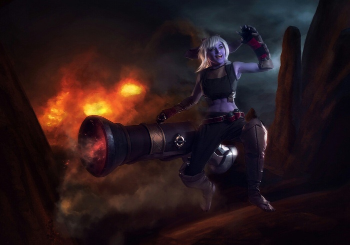 Тристана. Это, пожалуй, мой самый любимый образ. Йордлы - маленькие антропоморфные звери и мой невысокий рост очень помог мне вжиться в роль. Главная фишка костюма - пушка размером почти с меня, 145 см в длину и весит всего 6 кг.