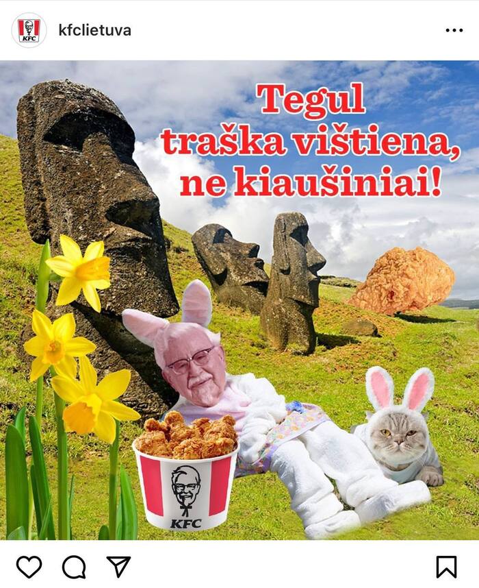 🍗 Гонконгское отделение KFC создало коллаб с популярным аниме «Атака титанов». Один из ресторанов полностью стилизовали под мультсериал. В этом аниме идут ожесточенные схватки людей с гигантскими титанами и рекламная кампания закладывает мысль, что люди (пока что только в Гонконге) каждый день встречаются с вызовами в жизни, а ведь можно зайти в KFC и сделать перерыв в этой борьбе. Одобрил бы ли это полковник Сандерс?
