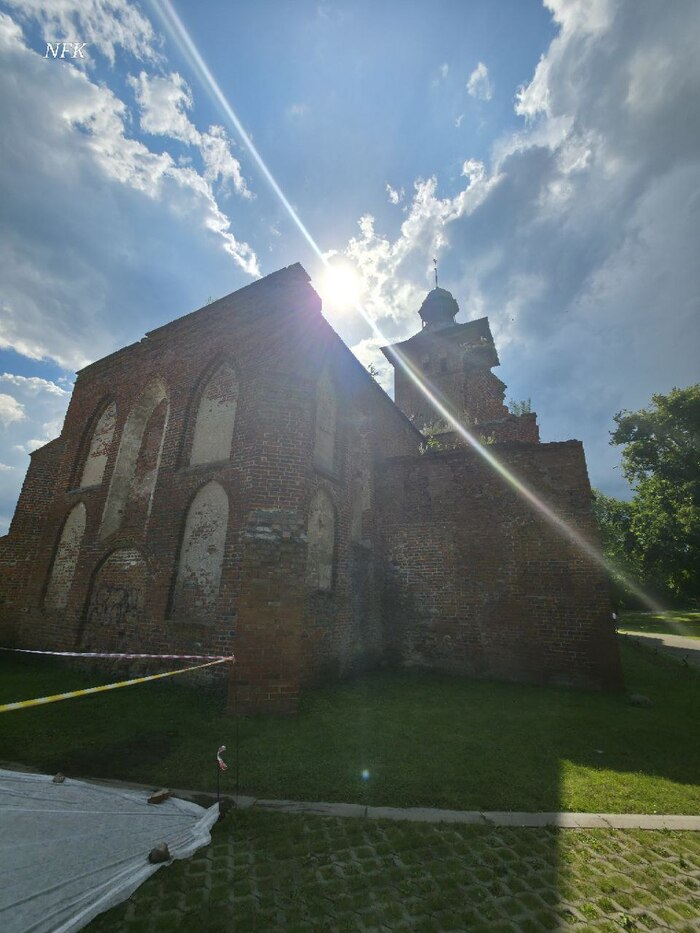 Войну она пережила целой. А убило её равнодушие. С 1945г кирха медленно умирала без ухода. Лишь в 1994-95гг бывшие жители Велау (ныне Знаменск) собрали средства на консервацию стен, поставили крышу на башню и обустроили смотровую площадку.