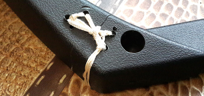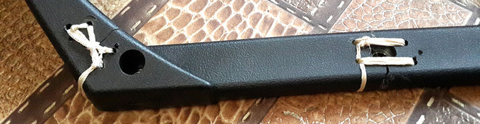 Сверлим по 2 отверстия диаметром 1-2 мм с каждой стороны разлома, а затем сшиваем капроновой нитью.