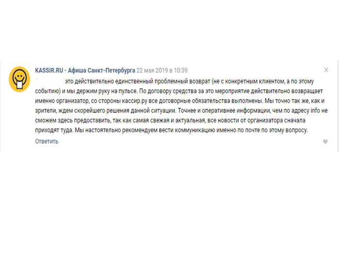 Выдыхаю, делать нечего, звоню по телефону. Попадаю на горячую линию кассир ру, где мне объясняют, что ничего страшного, такое бывает. Мы вам обязательно вернём деньги, вам всего лишь нужно назвать номер карты и три цифры... хотя нет, не то, о чем это я? А, да, Вам всего лишь нужно проехать пол Москвы и сдать билеты в нашей единственной точке в Москве, где принимают возвраты. Работает она с 10 до 19, не очень удобно, но ладно. И да, удаленно сдать ваши билеты к сожалению нельзя... Спасибо за ваш звонок!