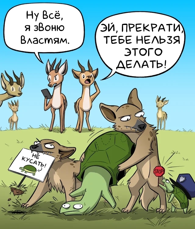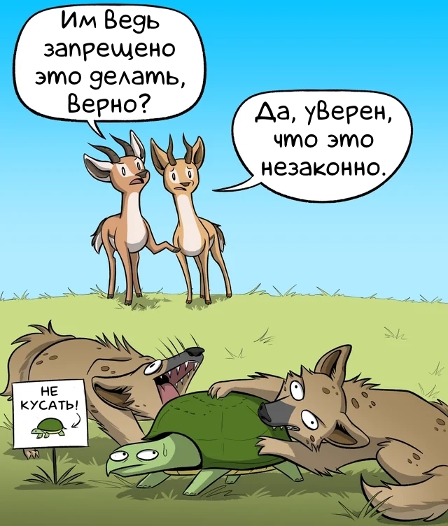 1372 AlexKud Переводы разных веб-комиксов Комиксы Продолжение поста «Не кусать»1 1 месяц назад Не кусать Показать полностью 9 [моё] Перевел сам Комиксы Юмор Животные Гиена Черепаха Антилопа Kat Swenski Длиннопост Ответ на пост 106 26 10 4 2 1 Ещё 1