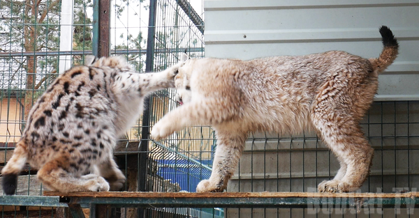Слева Мартин, справа Ханна. Во время недавнего их совместного пребывания в вольере удалось погладить Мартина немного (самец рыси с крайне отрицательным отношением к людям), правда под охраной Ханны, Мартин не сильно обиделся и даже никуда потом не ушёл, продолжил валяться и балдеть от присутствия подруги:)