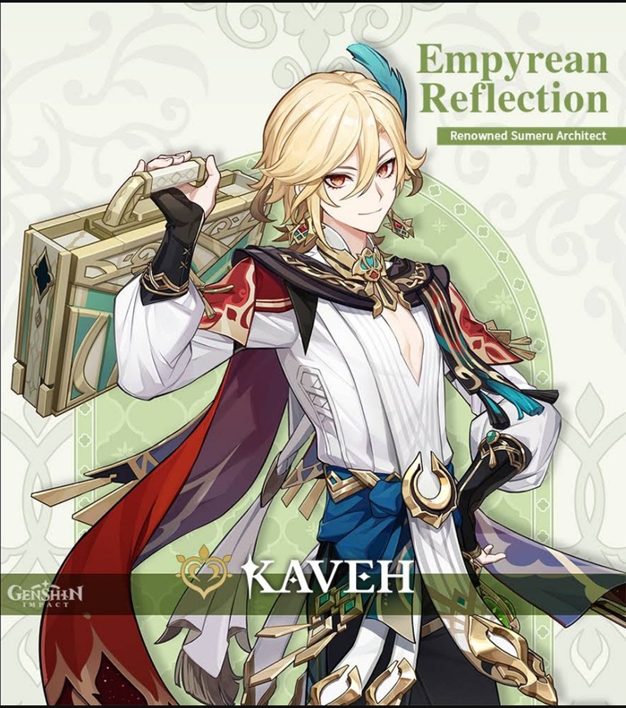Причуды мастера (пассивка №2) - когда Кавех находится под куполом своего взрыва стихии (Q), нормальные, заряженные и атаки в падении повышают его мастерство стихий на 25. Стакается до 4 раз, откат способности - 0.1 секунды. Бонус пропадает с исчезновением купола.