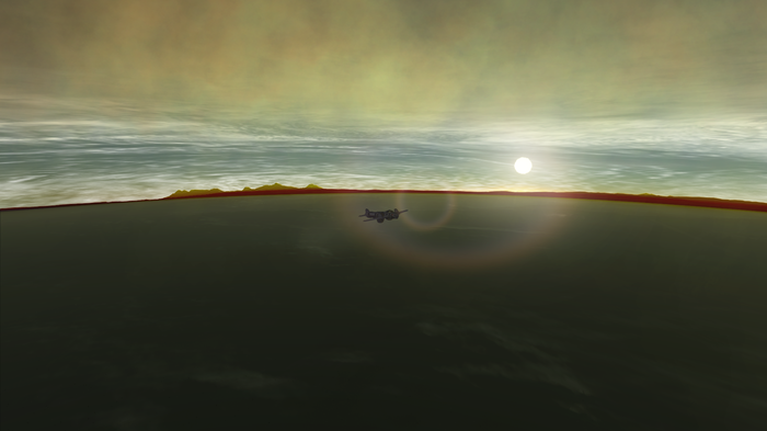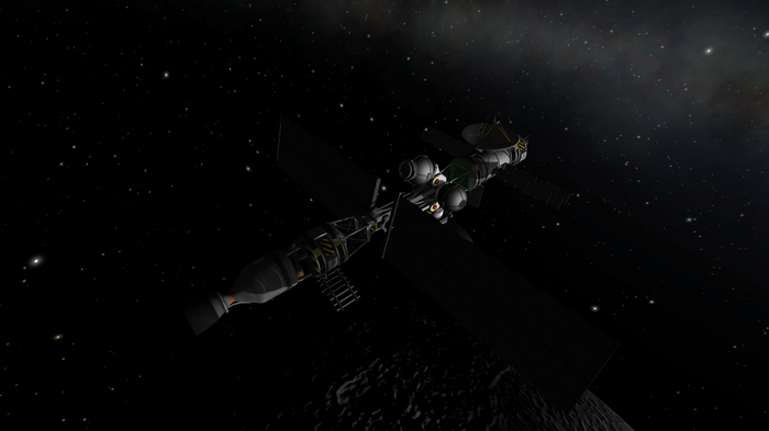 Родная планета предстала темной стороной перед экипажем. Она была слабо заметна на фоне яркого Кербола, но диск ее атмосферы все же выделялся из черноты космоса.
