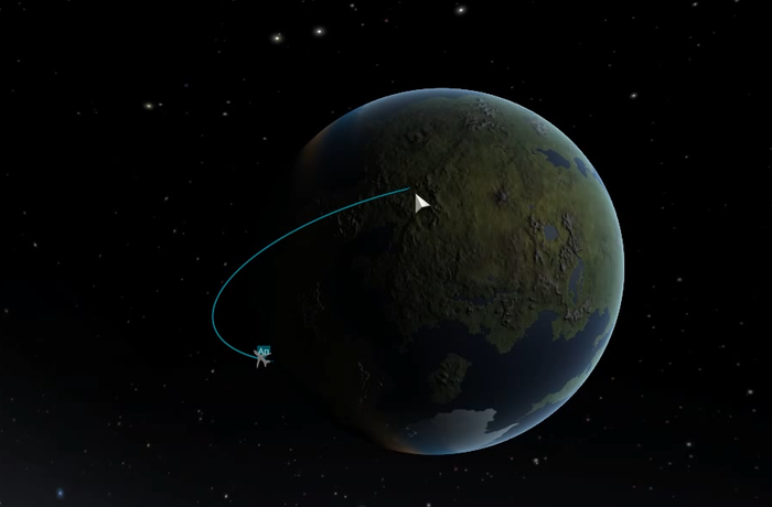 На следующий день Галилей подошел к Кербину на ближайшее расстояние. Еще за несколько десятков минут до перицентра Билл выполнил разворот корабля кормой на торможение, чтобы заранее подготовиться к маневру выхода на стабильную орбиту.