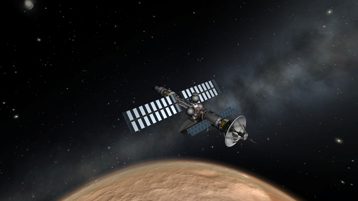 Этот корабль знал весь экипаж. Это был одноступенчатый космолет, способный взлететь с Кербина и выйти на высокую орбиту, не отделив при этом ни одной ступени. И посадка, и взлет выполнялись в горизонтальном режиме. В грузовой модификации корабль способен вывести на орбиту 40 тонн. Текущий его рекорд - пятьдесят одна тонна. То был тяжелый полет к Галилею - последний грузовой перед его запуском.