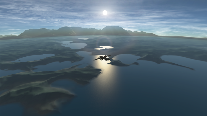 - Так, девять километров. Начинаю поворот к посадочной полосе. Кстати, сейчас наклоню машину - увидете остров, где был разработан КЭЛ. Поскольку такие вещи всегда создаются в двух экземплярах - один действующий прототип, а второй - для отладки и отработки внештатных ситуаций, - один экземпляр находился все это время на острове. Он умудрился проникнуть в коммуникационную сеть, перехватить управление спутниками на орбите.. Правда, робоапокалипсис случиться не мог - он неплохо был изолирован. Но вот связь со спутниками и кораблями заполучить смог - ему дозволялось периодически вмешиваться в обработку телеметрии космических кораблей. В общем, остров то ли разбомбили к чертям, то ли там само все самовыпилилось. Не знаю, даже сотрудникам Кербинской космической программы не говорят. Засекречено. Да оно и правильно. Зачем беспокоить массы? Пострадавших нет, а заводу хана. Теперь это памятник-музей.